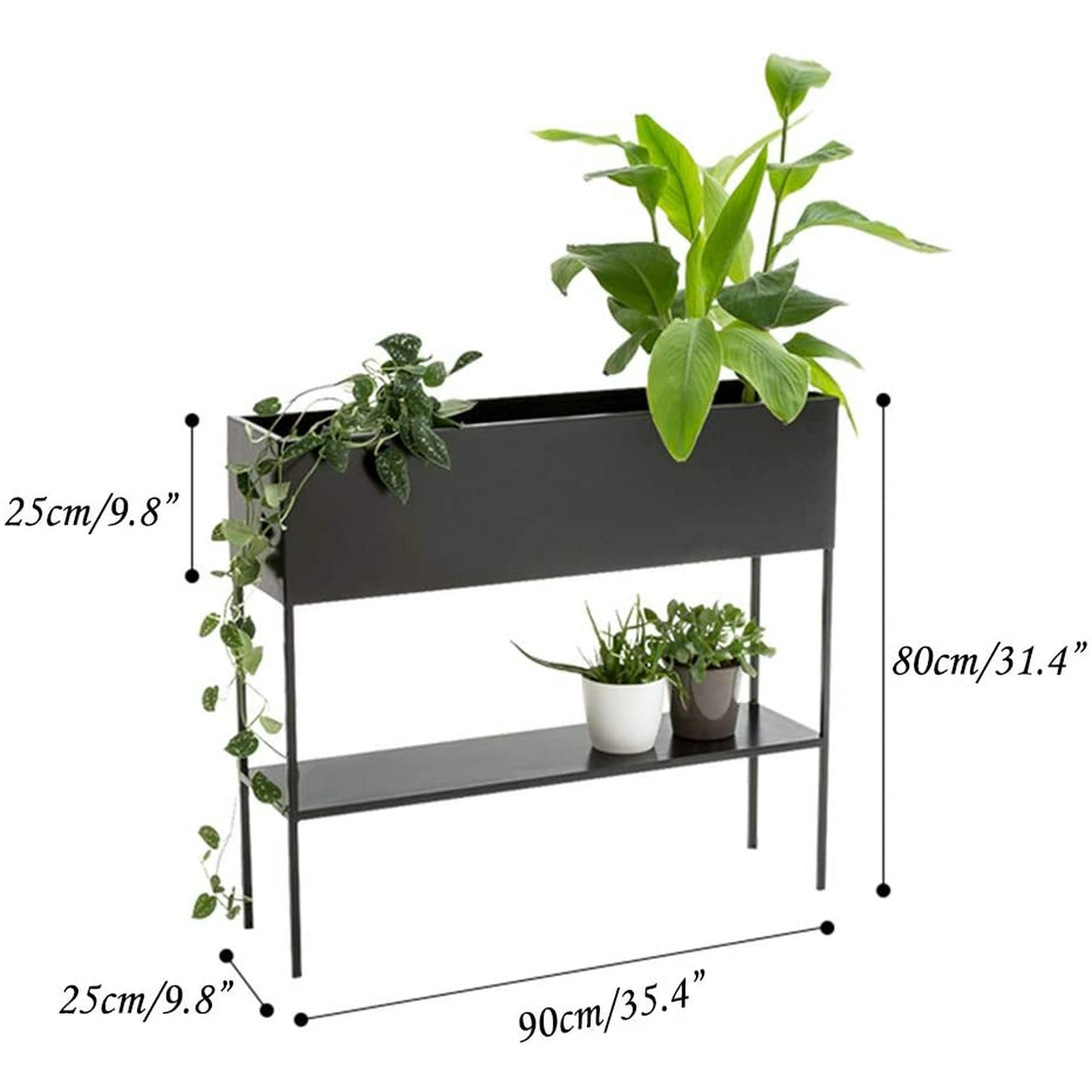 Ray Wrought Iron Plant Stand Nordic Style Indoor Raised Rectangular Planter Box Elevated Flower Pot Stand Holder With Shelf Black Metal Frame Walmart Canada