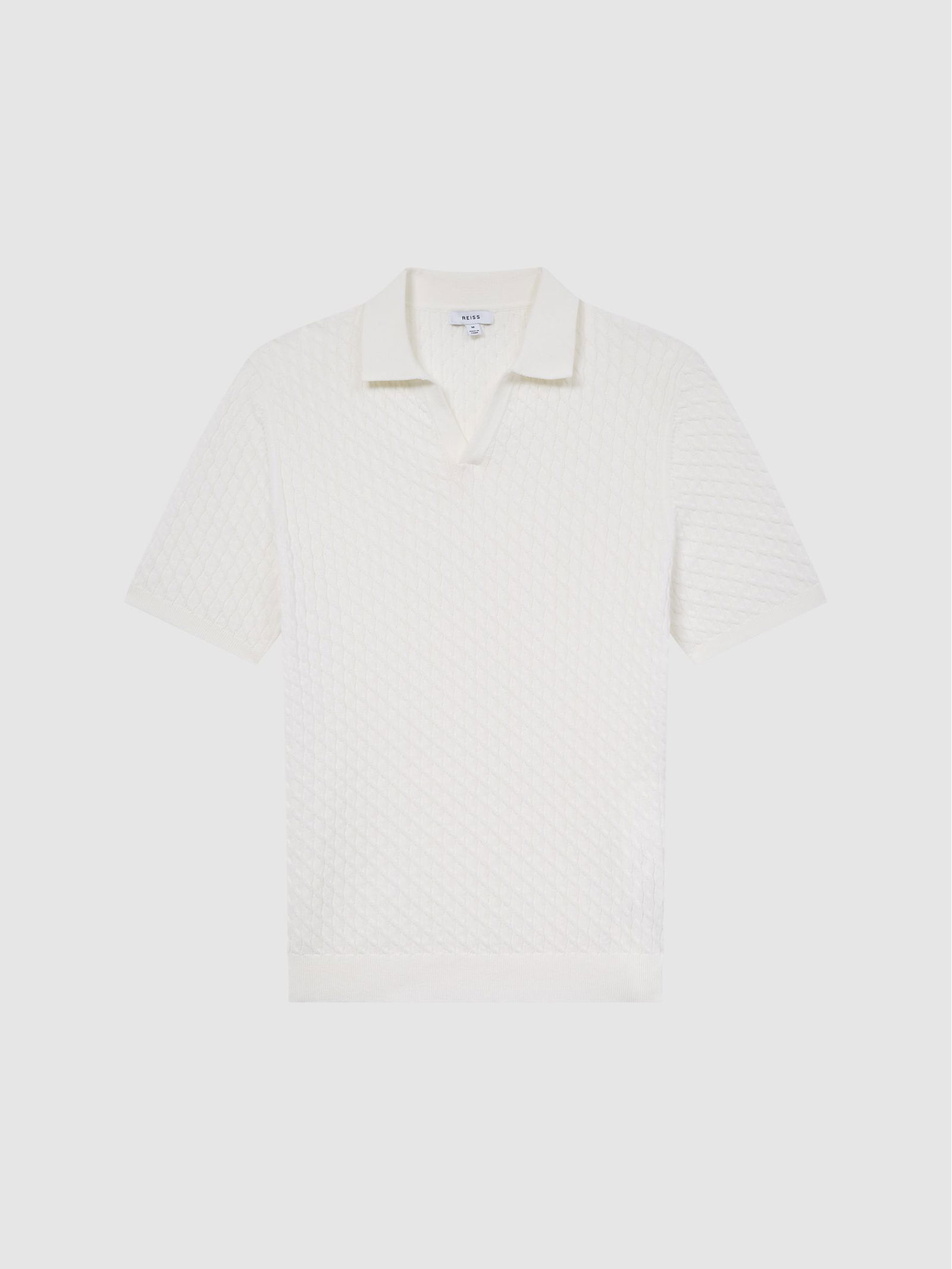 Reiss Federico Slim Fit Cable Knit Open Collar Polo Shirt In Ecru Endource
