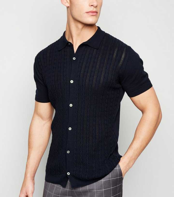 Ralph Lauren Cable Knit Polo Shirt Navy Aphrodite1994